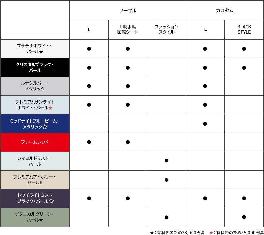 Photo:① ②N-WGN L(FF)車両本体価格(消費税10%込み)1,576,300円★ 価格には写真の有料色の価格は含まれておりません。ボディーカラーはプレミアムサンライトホワイト・パール(有料色:55,000円高) ③ ④N-WGN CUSTOM L・ターボ(FF)車両本体価格(消費税10%込み)1,912,900円★ ボディーカラーはクリスタルブラック・パール