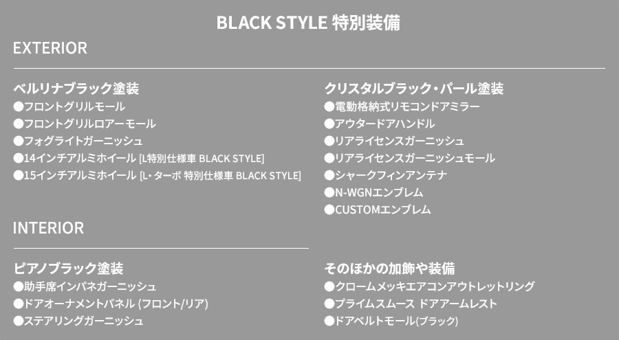 Photo:① ④N-WGN CUSTOM L・ターボ 特別仕様車 BLACK STYLE(FF) 車両本体価格(消費税10%込み)1,978,900円★ 価格には写真の有料色及びディーラーオプションの価格は含まれておりません。ボディーカラーはボタニカルグリーン・パール(有料色:33,000円高) ディーラーオプション(N-WGN/N-ONE専用 9インチ プレミアム インターナビ LXU-247NBi〈取付アタッチメント、パネルキット含む〉:253,000円〈取付工賃別途〉)装着車 ② ③N-WGN CUSTOM L・ターボ 特別仕様車 BLACK STYLE(FF) 車両本体価格(消費税10%込み)1,978,900円★ 価格には写真の価格は含まれておりません。ボディーカラーはボタニカルグリーン・パール(有料色:33,000円高)